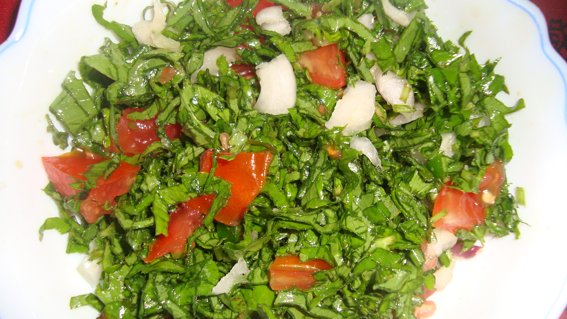 1. Wash the bunch of vallarai leaves thoroughly and then finely chop them up and put them in a large salad mixing bowl.