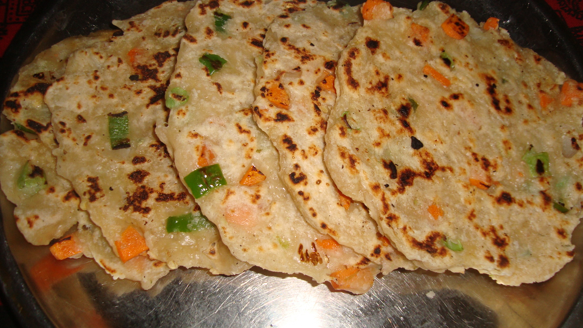 2. In a bowl, add the wheat flour, freshly scraped coconut and mix in the finely chopped vegetables.