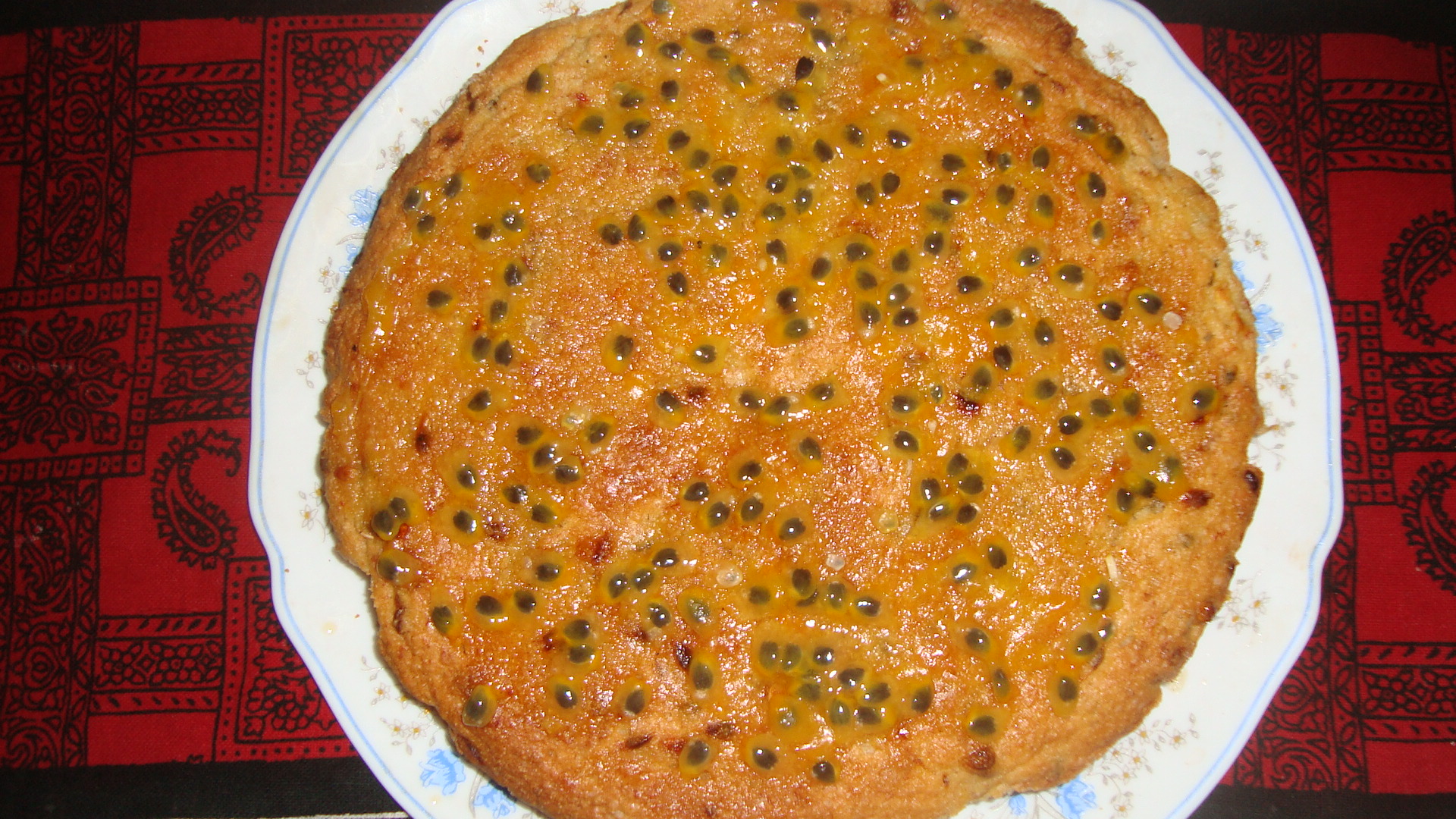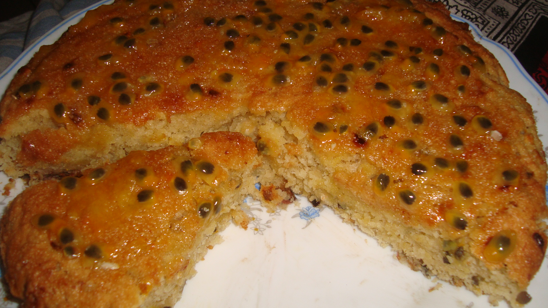 Last week, when my mother bought some passion fruit, I had mentioned that I had seen a delicious looking orange and passion fruit syrup cake recently on Poppy’s Patisserie. The very next day, my mother had baked a tangy, crunchy passion fruit and banana cake. The crunchiness is from the baked passion fruit seeds inside the cake.
