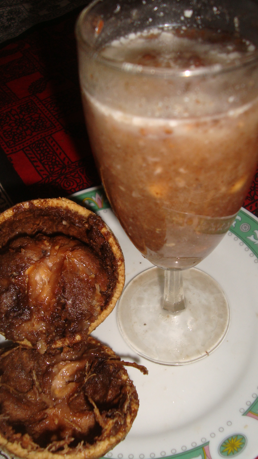 2. Break the shell of the woodapple and extract the pulpy fruit. Blend with water and sugar, to taste.