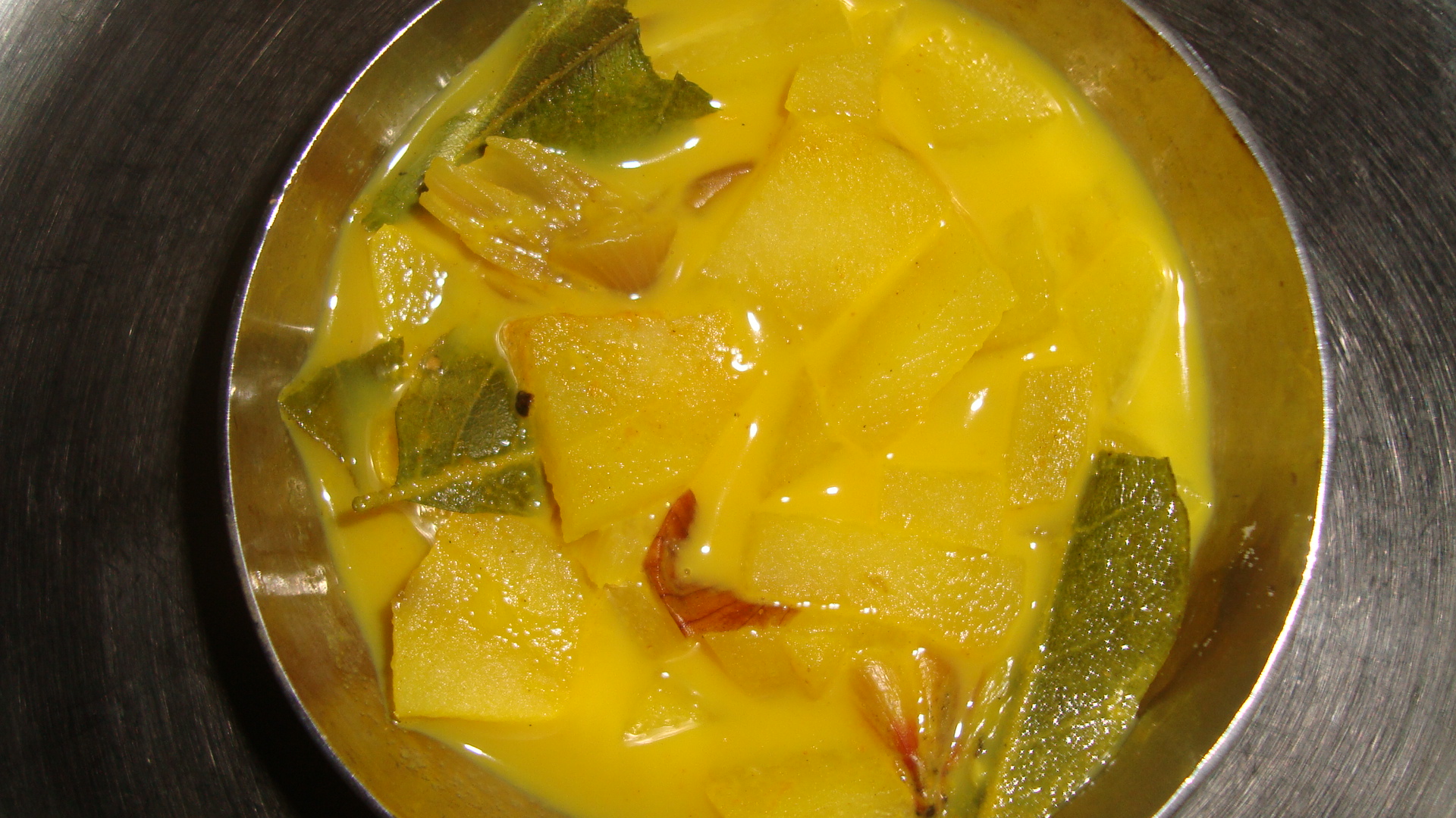 3. Bring the ‘sodhi’ to boil two or three times before removing from heat.