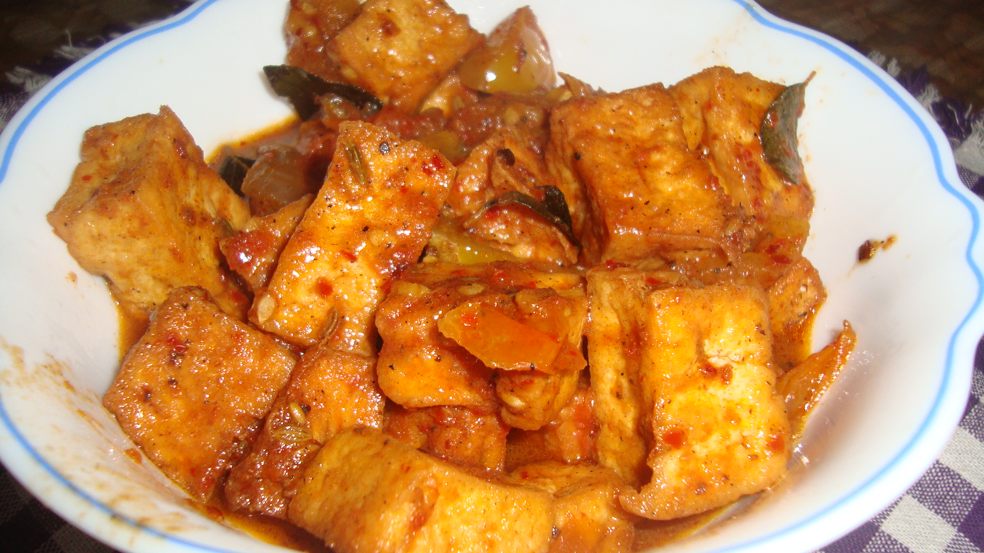 - Bean curd – ½ cup, lightly fried cubes