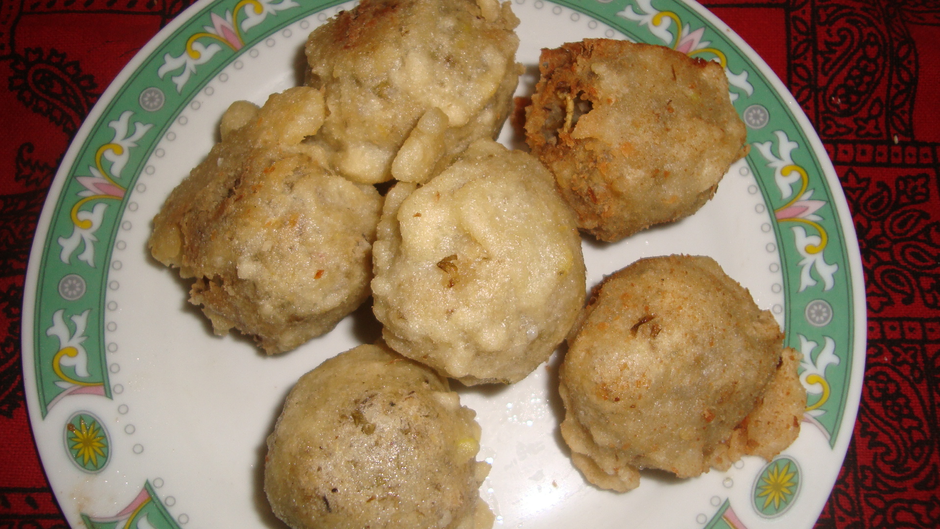 8. Dip each ball in the batter, coat it thorougly and deep fry.